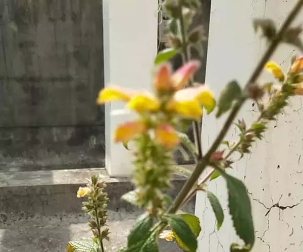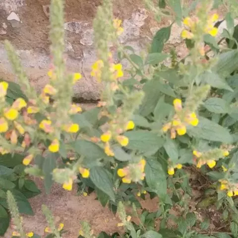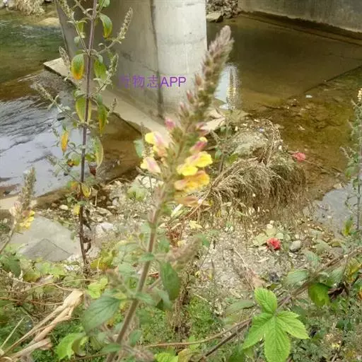 多年生粗壮、坚挺、直立、灌木状草本,高可达1米,全体被多细胞腺毛。茎圆柱形,下部木质化,多分枝。叶多,叶柄长6-12毫米,叶片卵形至卵状披针形,纸质,长2-8厘米,端急尖或渐尖,基部狭楔形,边缘具尖锯齿。花近于无梗,集成顶生稠密的穗状总状花序,长6-20厘米,仅基部有间断;苞片狭披针形,较萼稍短;花萼长5-6毫米,主脉5条明显,萼齿尖锐,钻状三角形,与萼筒等长;花冠黄色,外面带紫斑,多少被毛,花冠筒较花萼约长1倍,上唇顶端近于截形,有时有凹缺,下唇较长,有明显的褶襞,花药有长药隔,具柄;子房顶端及花柱基部被毛。蒴果长卵形,长约5-6毫米,密被棕色梗毛;种子长约0.5毫米,黄色,表面粗糙。花果期11月至次年3月。