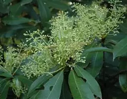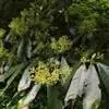 圆锥花序生于嫩枝基部,约4-7个,长5-6.5(9)厘米,有灰黄色小柔毛,在上端分枝,总梗长3-5厘米;花梗纤细,长5-7毫米;花小带绿色,长约3毫米,直径约4-5毫米.花被裂片长圆形,外面有绢毛,内面绢毛较疏,有纵脉3-5条,第三轮雄蕊的腺体戟形,有柄,退化雄蕊基部有毛;子房卵形,花柱纤细,均无毛,柱头略扩大。