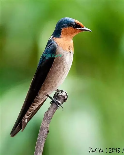 洋燕(图7) 繁殖期3-7月。巢呈杯形,由泥团黏附于建筑物的屋檐下、窗台或门廊,探出的岩崖,码头,桥梁,山洞,地下管道,隧道等。巢用细根,地衣,干草和羽毛衬里。鸟巢往往需要重复使用,如果到下个产卵季节时。筑巢时雌雄亲鸟轮流从江河、湖泊、沼泽、水田、池塘等水域岸边衔取泥、麻、线和枯草茎、草根,再混以唾液,形成小泥丸,然后再用嘴从巢的基部逐渐向上整齐而紧密地堆砌在一起,形成一个非常坚固的外壳。