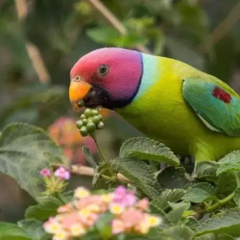 紫红头鹦鹉是鹦形目鹦鹉科的鸟类。鸟体为绿色,头部中间为红色,下颏下方延伸到脸颊下方,…
