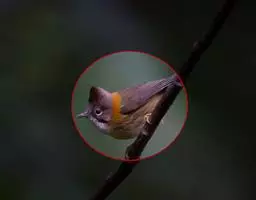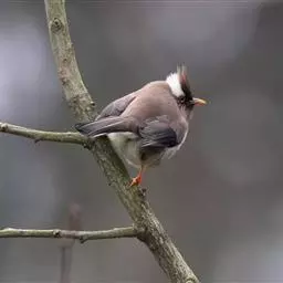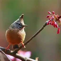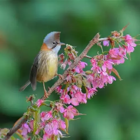 栗耳凤鹛,雌雄羽色相似。额、头顶至枕灰色,头顶有一短的不甚明显的羽冠,…