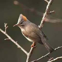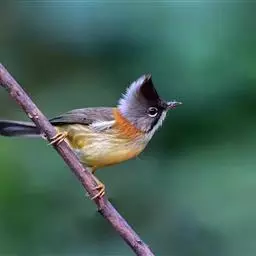 纹喉凤鹛:小型鸟类,体长13-16厘米。头顶和羽冠暗褐色或褐灰色,上体橄榄褐色,飞羽黑褐色,…