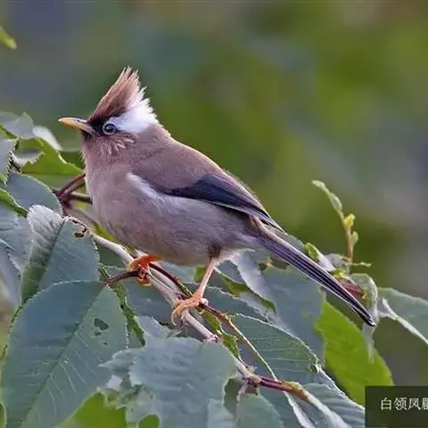 白领凤鹛是画眉科的一类动物。体长15-18厘米。头顶和羽冠土褐色,具白色眼圈,眼先黑色,枕白色,…