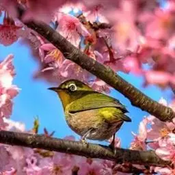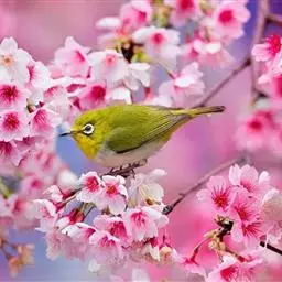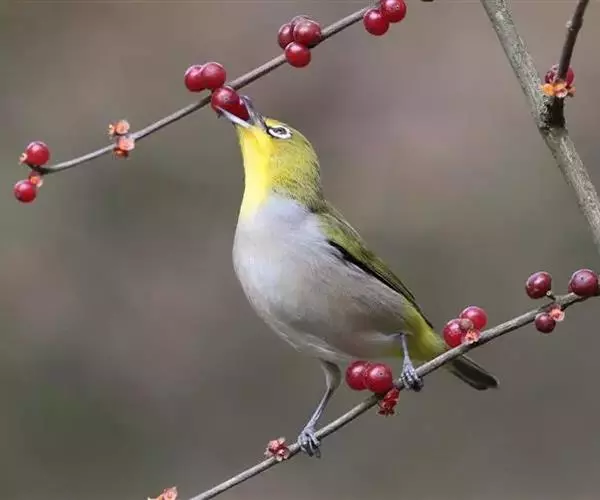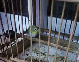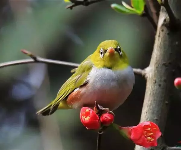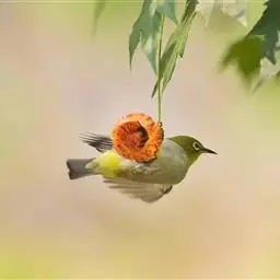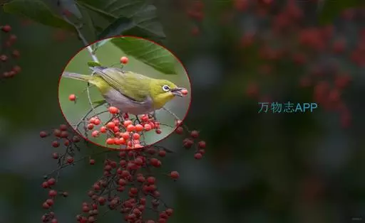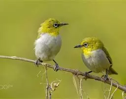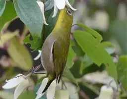暗绿绣眼鸟(学名:Zosterops japonica)俗名绣眼儿,粉眼儿 暗绿绣眼鸟 ,白眼儿,白目眶,粉燕儿。体小而细弱,背绿色、腹白色。性活泼,在林间的树枝间敏捷地穿飞跳跃。鸣叫声似“滑儿,滑-儿,滑-儿”,婉转动听。非繁殖季节亦有集群之习性,冬季能达50~60只。主要在阔叶林营巢,巢小而精致,为吊篮式,隐藏在浓密的枝叶间,不易发现。每年3~8月间繁殖,多在南方,每窝产3~4枚卵,为纯蓝绿或纯白色,平均重1克。