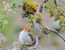 绣眼鸟(White-eye)是雀形目绣眼鸟科的97种鸟类的统称。体形小,体长90~122毫米;嘴小,为头长的一半,嘴峰稍向下弯;鼻孔为薄膜所掩盖;舌能伸缩,先端具有角质硬性的纤维簇;翅圆长;尾短;跗蹠长而健。雌雄相似。因其眼圈被一些明显的白色绒状短羽所环绕,形成鲜明的白眼圈得绣眼之名。完全树栖生活,取食昆虫、花蜜和甜软的果实;绣眼鸟性情活跃,高度群集。多数种类低声嘁嘁喳喳,但有几种高声转鸣。 绣眼鸟的嘴细小,主要在花中取食昆虫,亦食少量浆果。在林间及林缘附近耕作区分布。分布自亚洲南部至大洋洲和非洲。