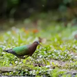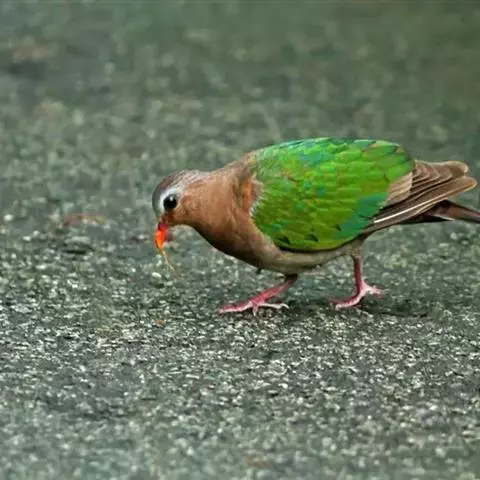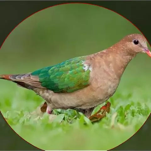 绿背金鸠体长约25厘米,是中等体型、尾甚短的地栖型斑鸠。下体粉红,头顶灰色,额白,腰灰,两翼具亮绿色。…