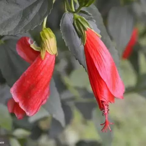 垂花悬铃花是锦葵科、悬铃花属常绿小灌木,外型略似朱槿,但叶片较为狭长浓绿;高30-60厘米,叶片互生,…