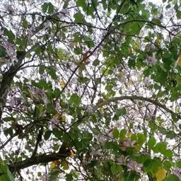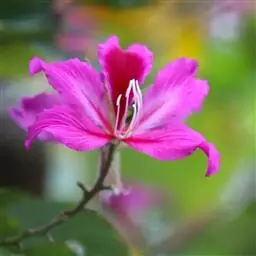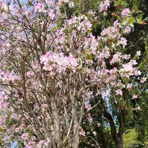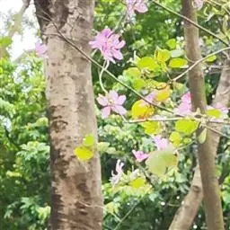 洋紫荆:落叶乔木;树皮暗褐色,近光滑;幼嫩部分常被灰色短柔毛;枝广展,硬而稍呈之字曲折,无毛。叶近…