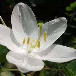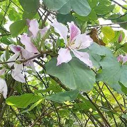 白花羊蹄甲(学名:Bauhinia variegata L.)羊蹄甲属,又名老白花皮,白花洋紫荆。叶近革质,花序总状或伞房状,顶生或侧生,总花梗短而粗,花托长12毫米,花蕾纺锤形;苞片及小苞片卵形,早落;花萼佛焰苞状,花大,花瓣白色或淡红色。花期3-5月,果期5-8月。