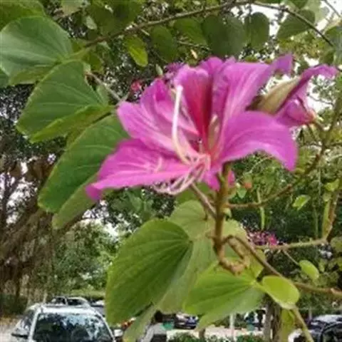红花羊蹄甲,为豆科羊蹄甲属植物,别名艳紫荆、洋紫荆。半落叶乔木,高达了~10 m,叶草质,…