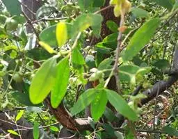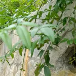 叶对生或簇生,呈长披针形至长圆形,或椭圆状披针形,长2-8cm,宽1-2cm,顶端尖,表面有光泽,背面中脉凸起;有短叶柄。