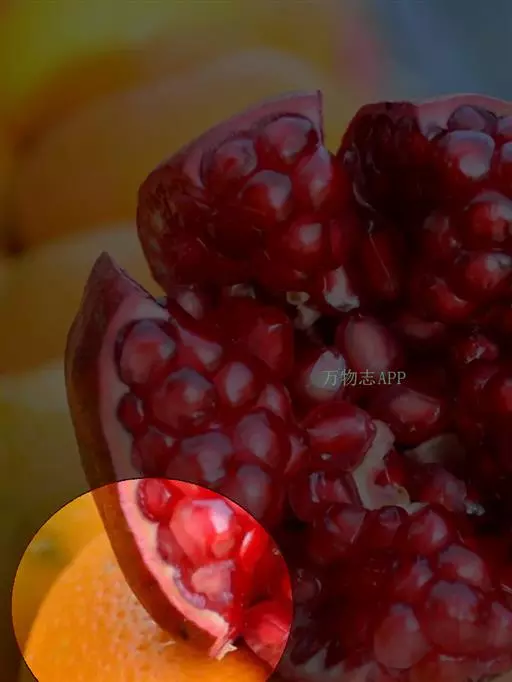 成熟后变成大型而多室、多子的浆果,每室内有多数子粒;外种皮肉质,呈鲜红、淡红或白色,多汁,甜而带酸,即为可食用的部分;内种皮为角质,也有退化变软的,即软籽石榴。