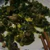 3、放入卤好的牛杂,加入上汤,调入调味料,撒上蒜苗,焖入味后盛出,装入干锅里,上桌即可。