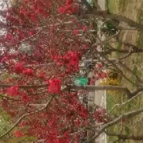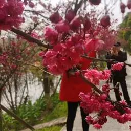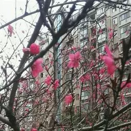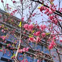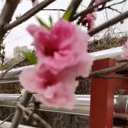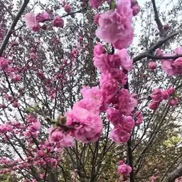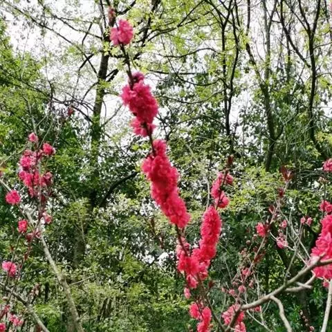 属于观赏桃花类的半重瓣及重瓣品种,统称为碧桃。华东地区碧桃花期是3月~4月,花朵丰腴,色彩鲜艳丰富,花型多。常见的品种有红花绿叶碧桃、红花红叶碧桃,白红双色洒金碧桃等多个变种。碧桃具有很高的观赏价值,在小区、公园、街道随处可见的美丽植物。