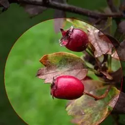 果实形状和大小均有变异,卵形、宽椭圆形或扁圆形,直径(3)5-7(12)厘米,长几与宽相等,色泽变化由淡绿白色至橙黄色,常在向阳面具红晕,外面密被短柔毛,稀无毛,腹缝明显,果梗短而深入果洼;果肉白色、浅绿白色、黄色、橙黄色或红色,多汁有香味,甜或酸甜;核大,离核或粘核,椭圆形或近圆形,两侧扁平,顶端渐尖,表面具纵、横沟纹和孔穴;种仁味苦,稀味甜。花期3-4月,果实成熟期因品种而异,通常为8-9月。