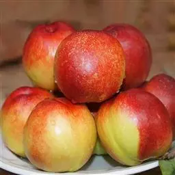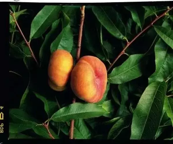 3.早油蟠:系从国外引进的油蟠桃品种,在黄淮地区6月中旬成熟。果形扁圆,平均单果重96克,果皮全面着鲜红色。果肉黄色,可溶性固形物含量为12%。