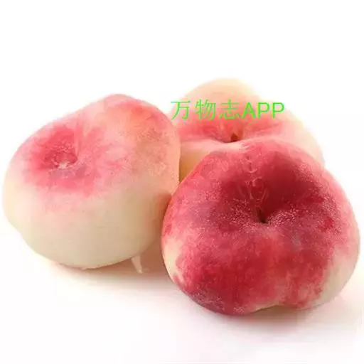 (四)果实性状:平均果重65.9克,最大果重114.0克。果形扁平,两半部对称,果顶圆平凹入,缝合线中深,梗洼浅而广。果皮底色浅绿白,果顶有紫红色斑点或晕,覆盖面占50%~70%,外观美,茸毛密,厚度中等,易剥离。果肉乳白色,近核处亦同色,软溶质,纤维少,香气中等,甜味浓,可溶性固形物11.3%,可溶性糖8.88%,可滴定酸0.29%,维生素C12.32毫克/100克。核半离、极小、扁平。