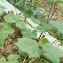 (2)覆膜保墒促苗生长:覆膜前要进行树盘中耕,并把桃苗四周土耙细扶平,捡去杂物,用两幅长1.2-1.5m地膜顺沟铺在苗两边。四周膜边用土压实。特别是树干中两膜接缝处要相互叠压到一起,严防破损地膜,提高保温保湿效果,促进桃苗快速生长。