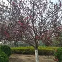 乔木,高3-8米,树冠宽广而平展,树皮暗红褐色,老时粗糙呈鳞片状,小枝细长,无毛,有光泽,绿色,向阳处转变成红色,具大量小皮孔,冬芽圆锥形,顶端钝,外被短柔毛,常2-3个簇生,中间为叶芽,两侧为花芽。