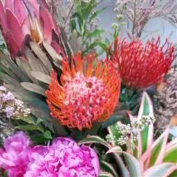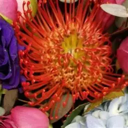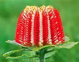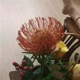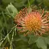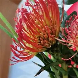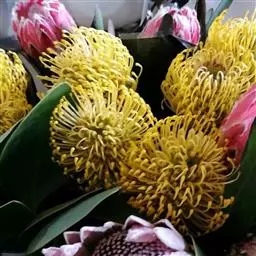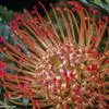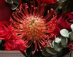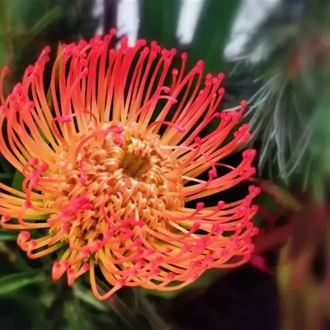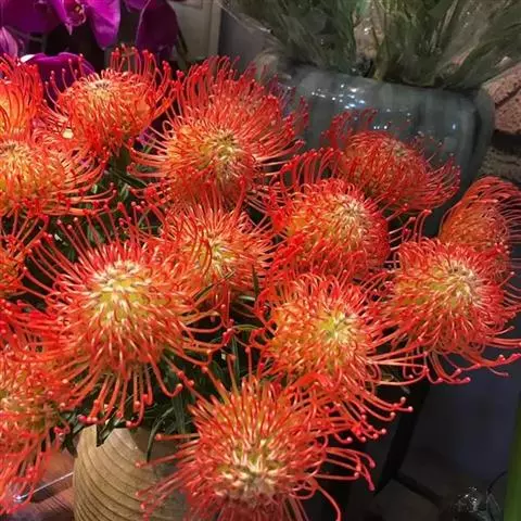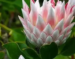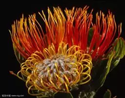 帝王花,山龙眼科帝王花属多年生常绿灌木植;茎干粗壮,叶色翠绿光亮;花朵呈圆球状;其苞片有的完全打开,…