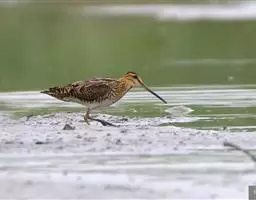 阔嘴鹬是涉禽,体长17厘米。特征为翼角常具明显的黑色块斑并具双眉纹。与黑腹滨鹬平滑下弯的嘴相比,…