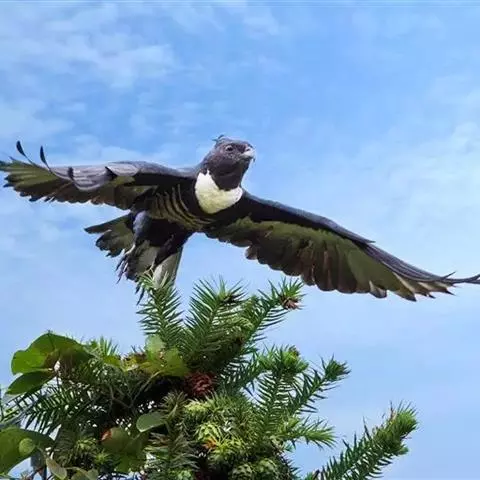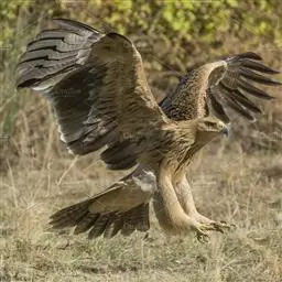 白肩雕:又名御雕,是大型猛禽。体长73-84厘米。体羽黑褐色,头和颈较淡,肩部有明显的白斑,在黑褐…
