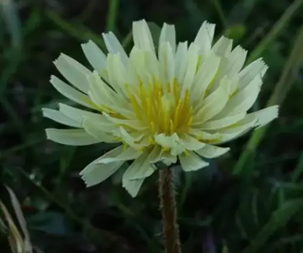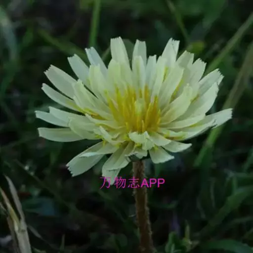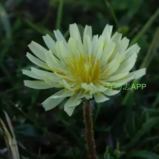 白花蒲公英(Taraxacum pseudo- albidum Kitag. ),菊科,蒲公英属。多年生草本,植株高3—10厘米。叶无毛,条形,少狭倒卵形。舌状花白色,花果期6—8月 。分布于产甘肃西部(阿克塞)、青海、新疆、西藏等省区。