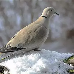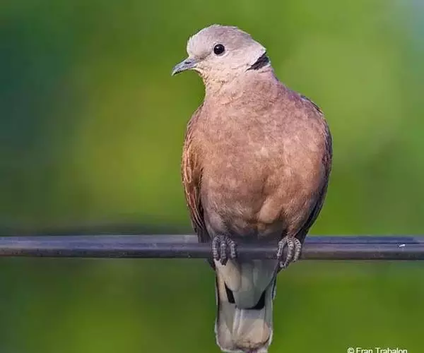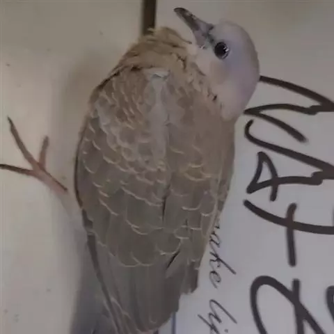 欧斑鸠体长27厘米,是一种体型略小的粉褐色斑鸠。颈侧具多黑白色细纹的斑块,翼覆羽深褐,…