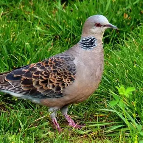 山斑鸠,是鸽形目鸽鸠科斑鸠属鸟类,又名金背斑鸠、棕背斑鸠、山鸠、金背鸠、麒麟斑、麒麟鸠、东方斑鸠、绿斑鸠、山鸽子。山斑鸠颈侧具明显黑白色条纹的块状斑,上体深褐色、具扇贝状斑纹,羽缘棕色,尾羽近黑色,下体多偏粉色。虹膜黄色,喙灰色,脚粉色。山斑鸠是留鸟,在中国常见且分布广泛。此外,还分布于不丹、尼泊尔、巴基斯坦、印度、日本等国。栖息于针阔混交林、季风常绿阔叶林、果园及农耕区,多成对活动于开阔农耕区、村舍、寺院周围及防火林带。取食于地面,主要觅食植物种子、果实、嫩芽等,也吃昆虫。山斑鸠飞翔时鼓翼快速,叫声为反复而低沉的“咕咕咕”声。繁殖期在4-7月,营巢于林中树上,通常一年繁殖2窝,窝卵数2枚,由雌雄亲鸟轮流孵卵,孵化期18~19天。山斑鸠的肉、卵可食,肉入药可益气明目、强筋壮骨,治久病气虚、衰弱无力、两目昏暗等病症。山斑鸠啄食杂草种子,对农田清除杂草有益;但有时也刨食农作物及树的种子。山斑鸠