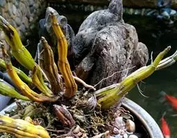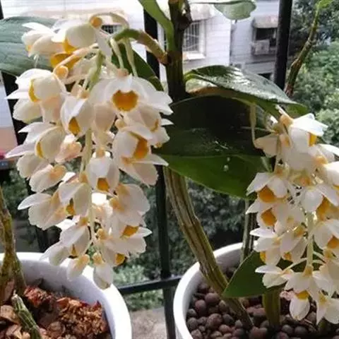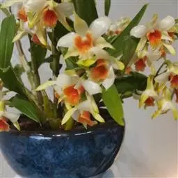 通常选用四壁多孔的塑料或陶瓷花盆,用碳根、泥炭藓、树皮块、木炭块等作盆栽材料。根据兰苗的大小,选择不同规格的花盆,但不宜用大盆栽小苗口上述栽好材料在使用前必需在清水中浸泡1天以上备用。盆底要多垫大瓦片或碎砖块,深度至盆底约1/3处,然后将兰苗放于盆中央,并在一旁插一细竹竿以固定兰苗,再填入其他栽培材料,注意根与根之间用材料隔开。