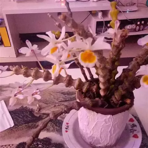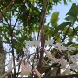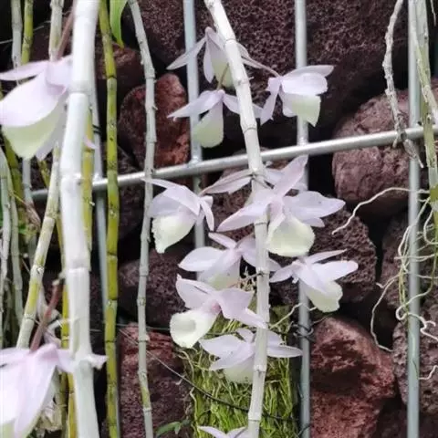 美花石斛是兰科石斛属多年生草本。茎柔弱,斜立或下垂,呈细圆柱形,有时分枝;叶互生于茎上,…