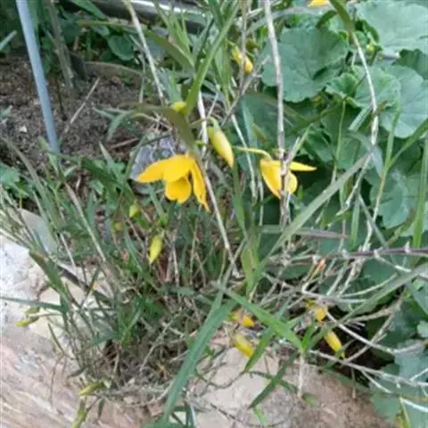 广东石斛:茎直立或斜立,细圆柱形,不分枝,具少数至多数节。叶革质,二列、数枚,互生于茎的上部,狭长…