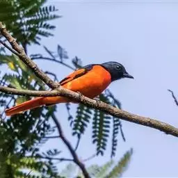 赤红山椒鸟为山椒鸟科山椒鸟属的鸟类,俗名红十字鸟、朱红山椒鸟。雄鸟红色,雌鸟黄色。…