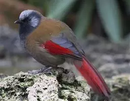 藏朱雀:全长约17-18厘米。雄鸟头部深红色具光辉,喉部暗红色具白色点斑;背部灰白色,各羽具玫瑰红…