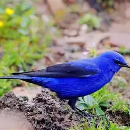 蓝大翅鸲是鹟科、大翅鸲属小型鸟类,体长19-21厘米。两翅尖长。雄鸟通体鲜紫蓝色具金属光泽。…