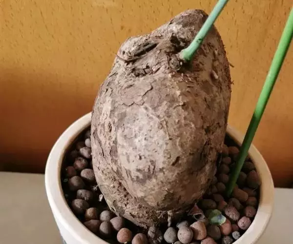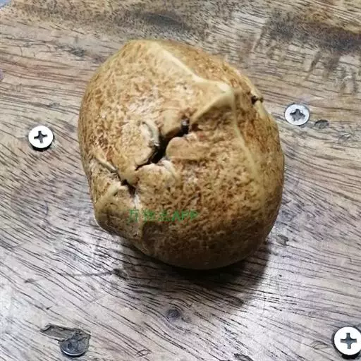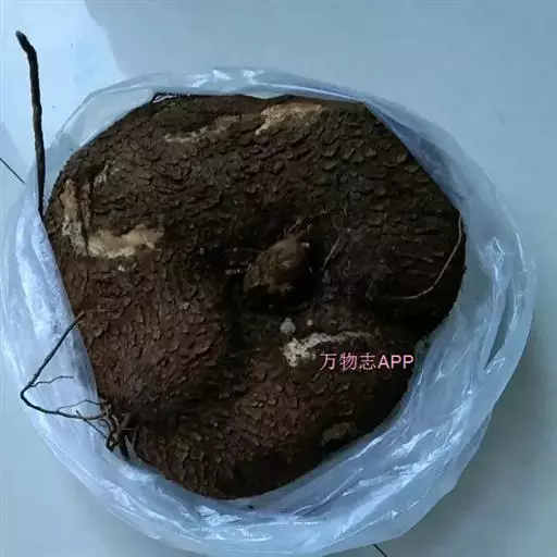 药材性状:块根略呈扁球形或球形,直径6-13cm,顶端微凹陷,残留茎基直径5-7cm。表面深棕色,粗糙,有纵向突起的皮孔,长1-3mm。商品多为类圆形的横切块片,直径3-7cm,厚2-5mm,略卷曲,切面可见维管束(三生构造)排列成3-4个同心环。气微,味苦。