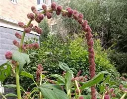花序穗状,无柄,长8-15毫米,直径3-4毫米,每3朵花生于1鳞状苞片内;花被合生,上部扁平成盾状,盾片宽五角形,周围有狭窄的翅状边缘;雄蕊2;种子直立,近圆形,直径约1毫米,密生乳头状小突起。花果期7-8月。 盐爪爪