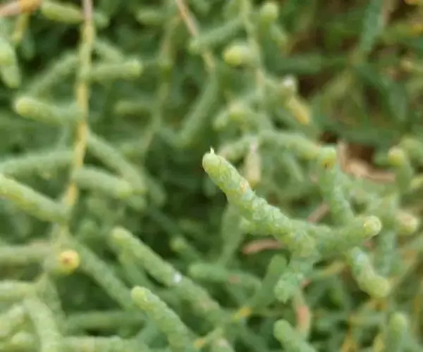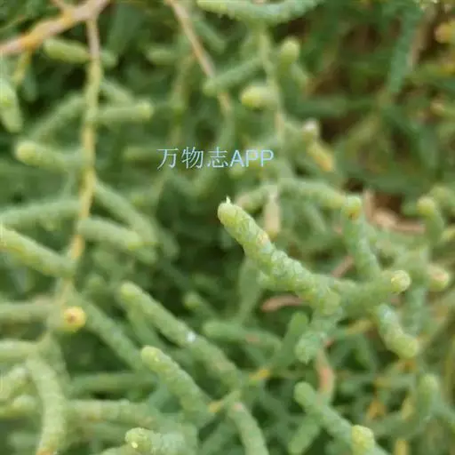 小灌木,高20-50厘米。茎直立或平卧,多分枝;枝灰褐色,小枝上部近于草质,黄绿色。叶片圆柱状一,伸展或稍弯,灰绿色,长4-10毫米,宽2-3毫米,顶端钝,基部下延,半抱茎。