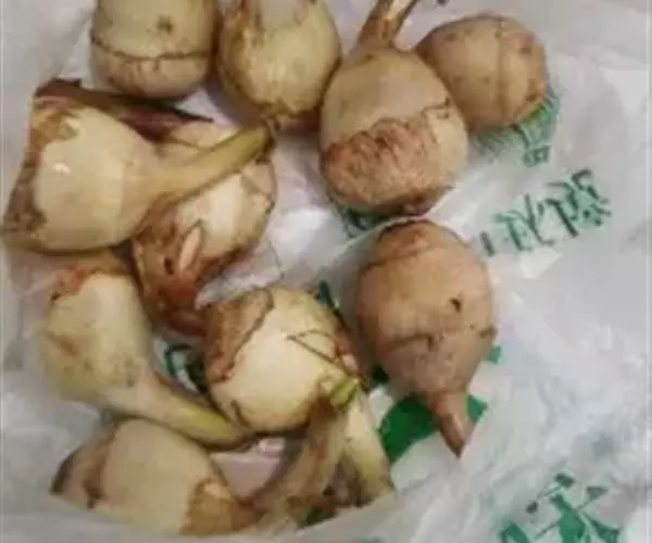 采收时间因地区不同而异。山东一带自秋季初霜后(茎叶枯黄时)到第2年球茎发芽前,即11月至翌年3月,可随时采收,在霜降到大雪期间采收较多,在地上部茎叶刚枯黄时采收产量较低,一般延迟采收产量高。这是因为茎叶刚枯黄时,短缩茎中的养分仍可继续向球茎输送,使球茎继续膨大,从而增加产量。所以,在10月底到11月初排去田水,并割去慈姑叶片,留茬15厘米左右。割叶后每隔2m开沟,沟深30厘米左右,畦面晒干并整细,套种越冬青菜,既可增加慈姑产量,又可在1-2月蔬菜淡季供应上市,提高经济效益。