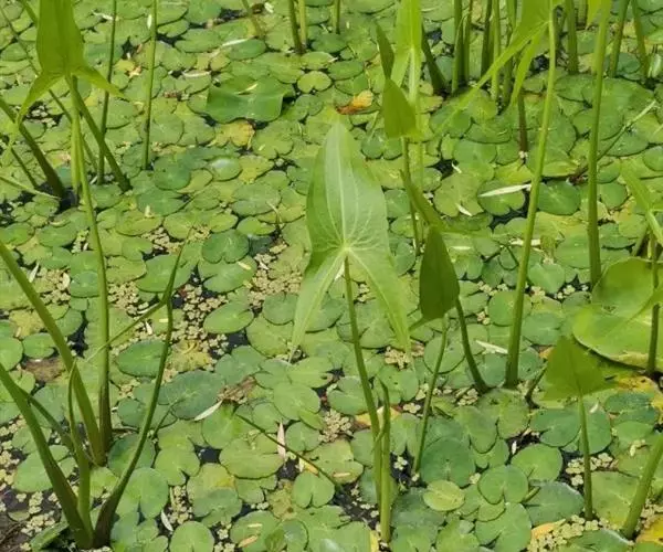 该变种与原变种不同在于:植株高大,粗壮;叶片宽大,肥厚,顶裂片先端钝圆,卵形至宽卵形;匍匐茎末端膨大呈球茎,球茎卵圆形或球形,可达5-8×4-6厘米;圆锥花序高大,长20-60厘米,有时可达80厘米以上,分枝()1-)2()-3),着生于下部,具1-2轮雌花,主轴雌花3-4轮,位于侧枝之上;雄花多轮,生于上部,组成大型圆锥花序,果期常斜卧水中;果期花托扁球形,直径4-5毫米,高约3毫米。种子褐色,具小凸起。