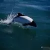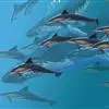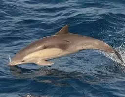 真海豚,身体细而流线型。体色十分复杂而独特,通常十字交叉型,黄褐色在前灰色在后,背面黑色向下延伸,…