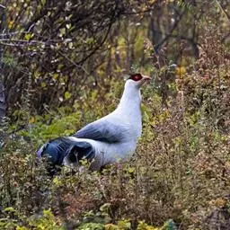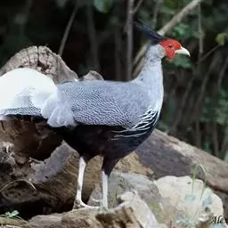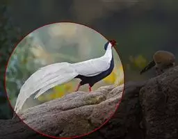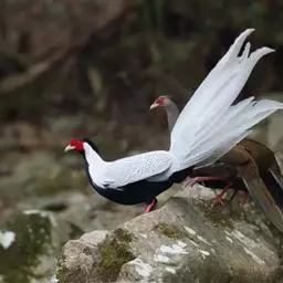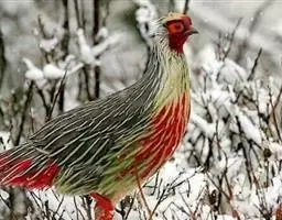 白颈长尾雉:大型鸡类,体长81厘米,体型大小和雉鸡相似。雄鸟头灰褐色,颈白色,脸鲜红色,其上后缘有…