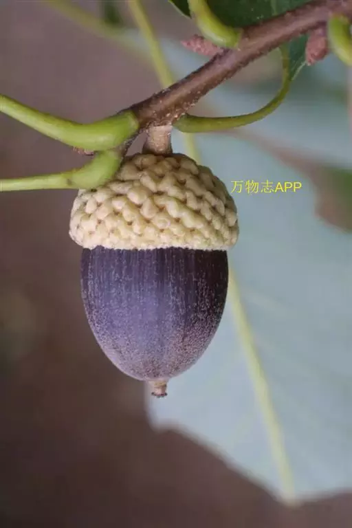 本变型与原变型 f. pekingensis 不同处在于壳斗包着坚果3/4以上,小苞片背部呈瘤状突起,叶背被疏柔毛。
