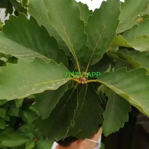 雄花序长4-8厘米,雄花单生或数朵簇生于花序轴,微有毛,花被6裂,雄蕊通常10枚;雌花序生于新枝叶腋,单生或2-3朵簇生。壳斗杯形,包着坚果约1/2,直径1.2-2厘米,高1-1.5厘米;小苞片卵状披针形,长约2毫米,排列紧密,被灰白色短柔毛。