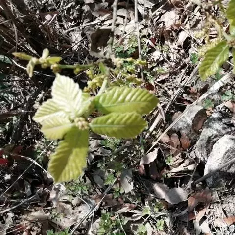 本变种与原变种不同处,叶缘具粗大锯齿,齿端尖锐,内弯,叶背密被灰色细绒毛,叶片形状变异较大。花期3-4月,果期10-11月。