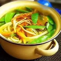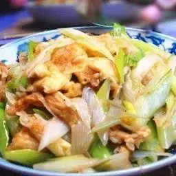 3、配菜其实不是很讲究,什么都可以,都主要以针叶菜为主,最常配的就是黄豆芽,莴笋尖,蒜苗,芹菜等。