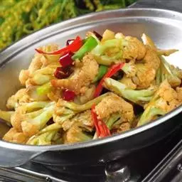 干锅花菜,是湘菜常见的一道菜,以花菜、秀珍菇、蘑菇、青红尖椒为主要食材,…