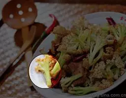 2、牛肉先 用刀背拍松肉纤维,切片后用蛋清、生粉腌制,可使牛肉的口感更加软嫩。
