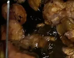 9. 锅烧热后倒油,油要偏多点。是平时炒菜的2---3倍。油七分热时,放入姜片煸炒。