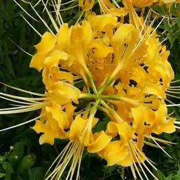 中国石蒜草本,地生。植株无毛,叶带状,顶端圆;伞形花序,花黄色;花被裂片背面具淡黄色中肋,倒披针形…